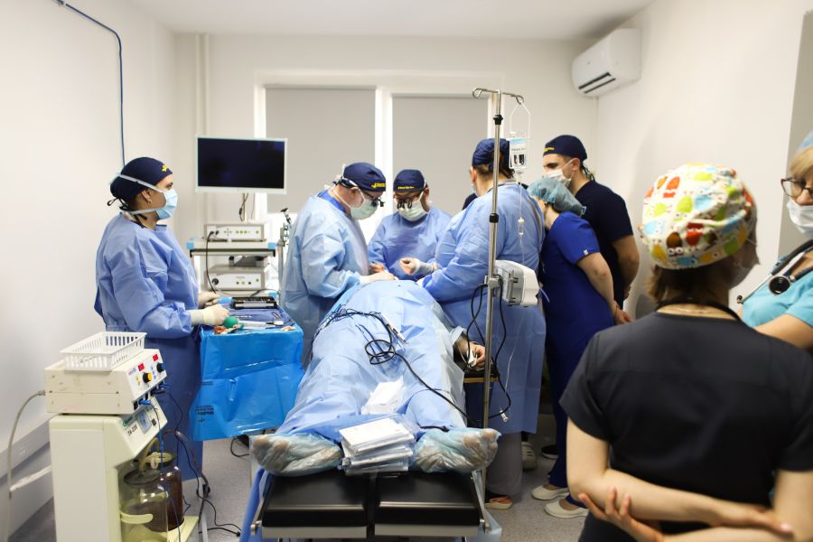 Одразу в трьох операційних найважчі пацієнти – цивільні та військові. Як пояснює пластична хірургиня з Нью-Йорка Ірина Каранець, так домовилися попередньо, аби ще встигли побачити, як приживається імплант та як поводить себе тіло після реконструктивної зміни.