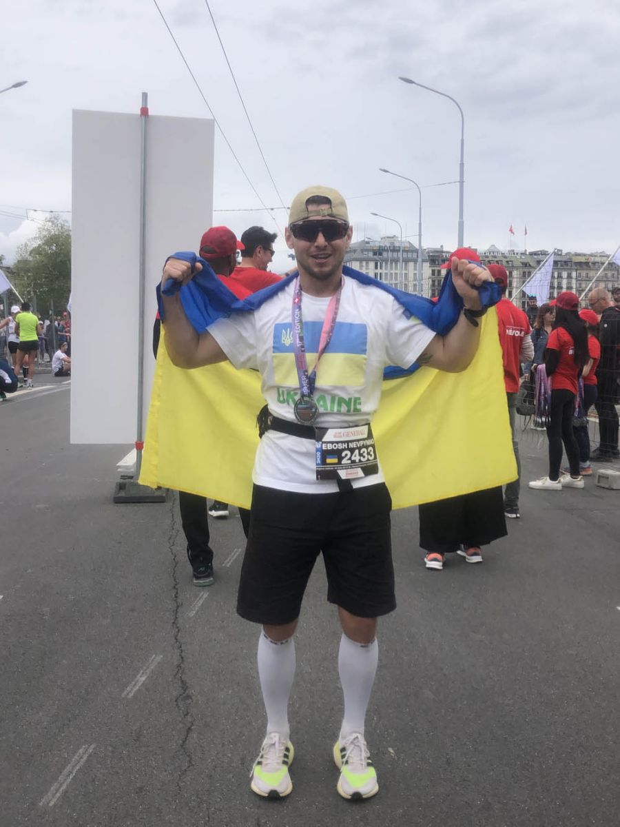 Микола Таран з Івано-Франківська здолав 42 км в Женеві з прапором України, інформують "Вікна".