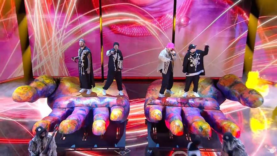 Далі Kalush Orchestra вийшли на сцену в Ліверпулі та запалили зі своїм зворушливим хітом про маму фронтмена колективу Олега Псюка наживо.