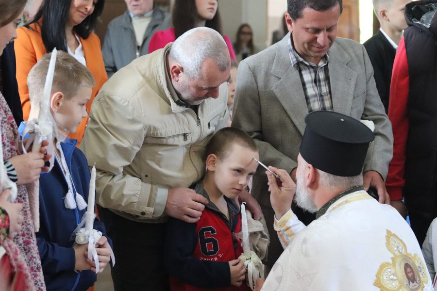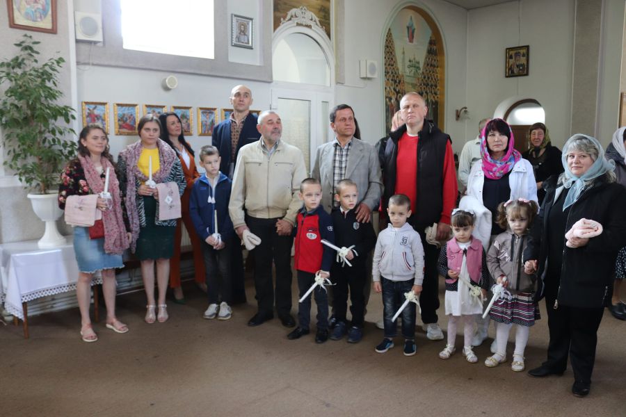 Священники Собору Святих Землі Укаїнської ПЦУ Григорій та Федір Морози охрестили не тільки шістьох дітей, а й двох їхніх тіток. Загалом родина, яка тут проживає, налічує дев’ять членів: мама з шістьма дітьми, серед них є близнюки та двійнята, бабуся та дві тітки.