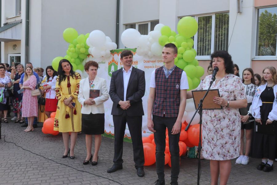 Під час урочистостей з нагоди завершення 2022-2023 навчального року за вагомі досягнення в навчанні, конкурсах, громадській роботі впродовж трьох навчальних років на славу нашої громади та рідного закладу міський голова Андрій Найда вручив одинадцятикласниці Софії Семенюк диплом лавреата премії імені Дмитра Бахматюка.