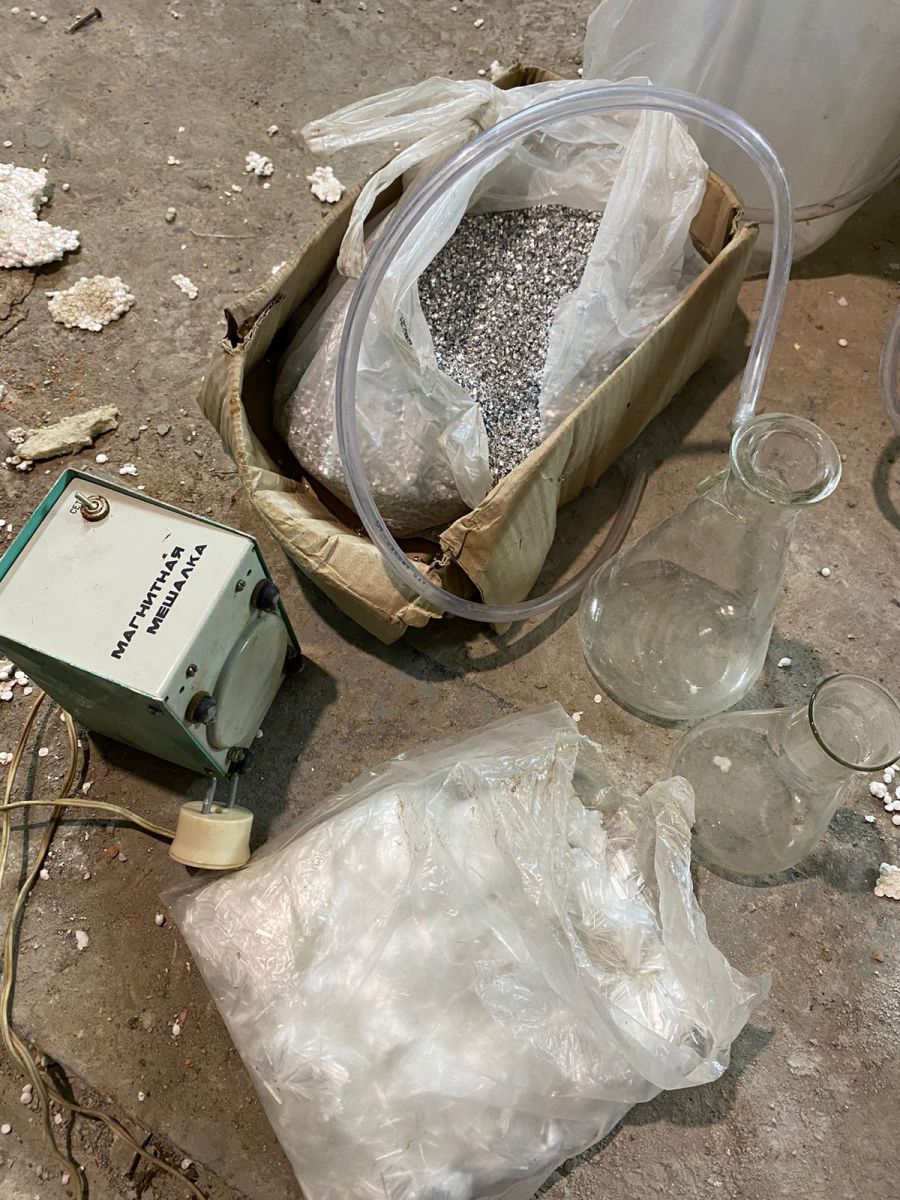 Також за місцем проживання затриманого та осіб, які можуть бути причетні до протиправної діяльності, вилучили автомати, пістолети, глушники, гранату, набої різного калібру, обладнання та прекурсори, які використовуються для виготовлення наркотиків.