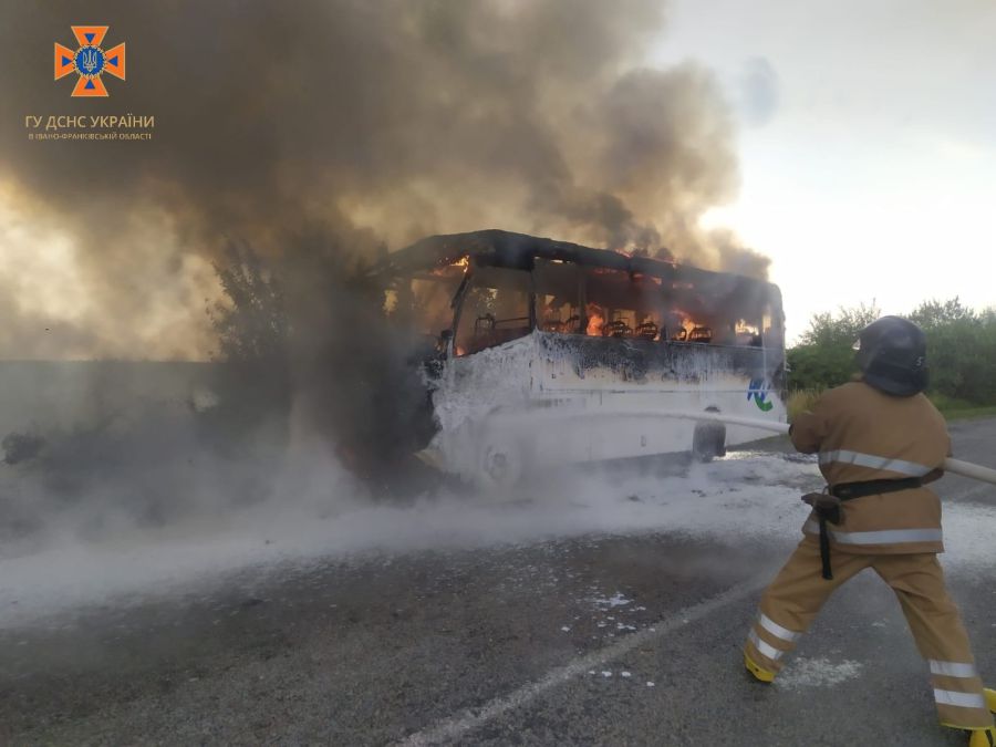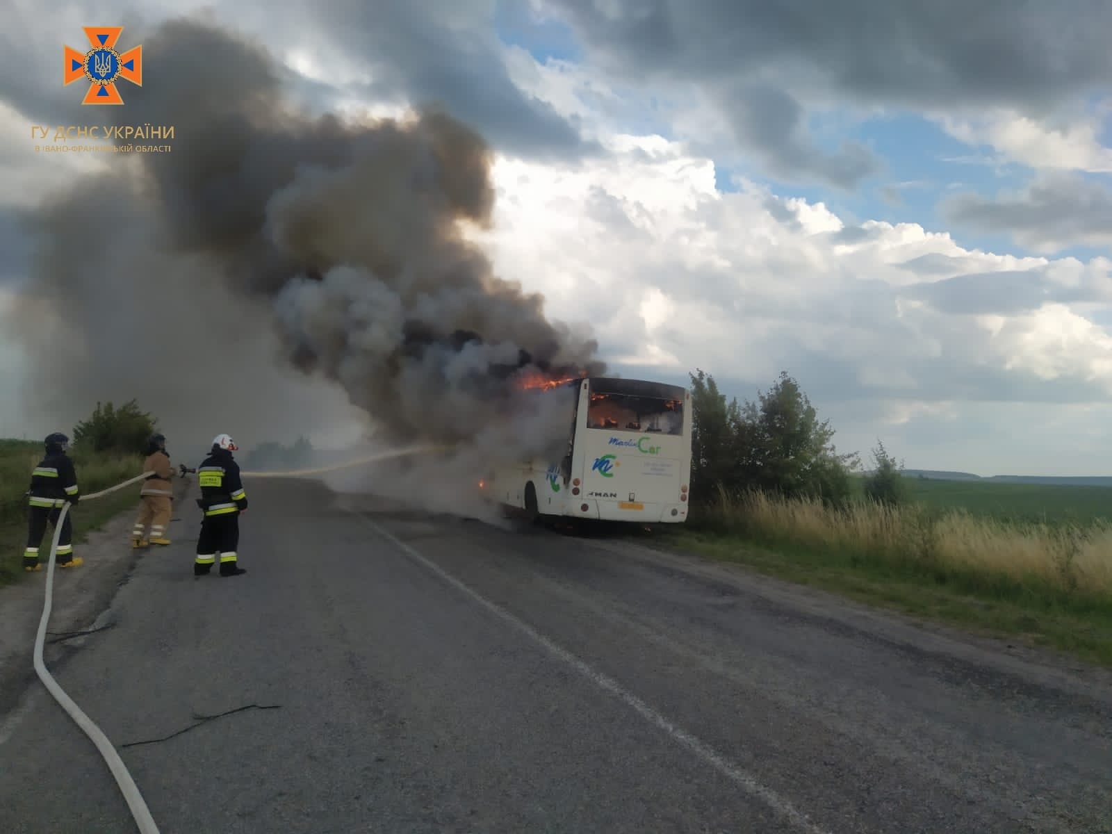 Автобус слідував за маршрутом "Івано-Франківськ — Делева". У автобусі перебував водій та 9 пасажирів, які через пожежу самостійно покинули транспортний засіб, інформує Головне управління ДСНС України в Івано-Франківській області.