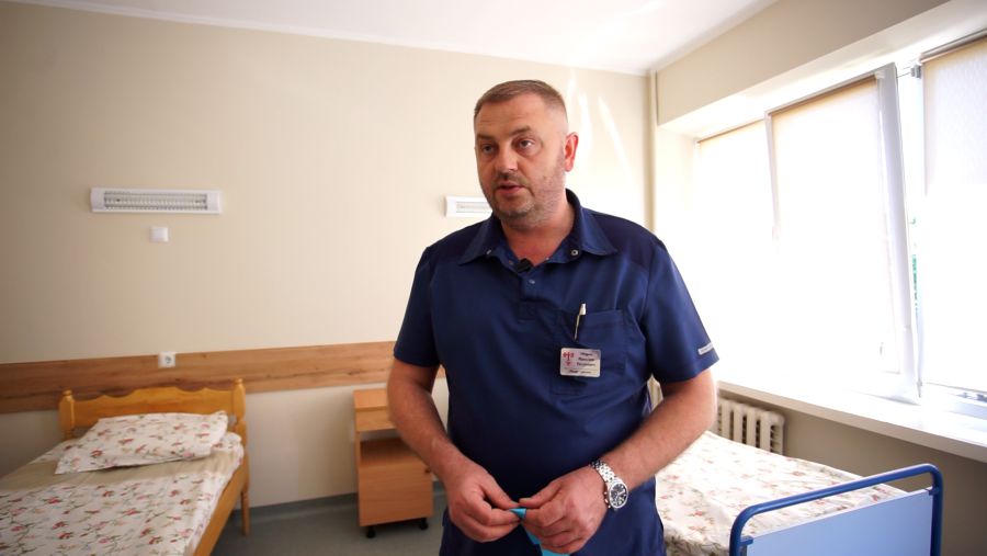Очолює відділення медичної реабілітації та фізичної терапії Михайло Гладенький — це перше його місце роботи після закінчення навчання у медичному університеті. За його словами, працівники відділення, а загалом тут їх є 31 (у тому числі 5 лікарів фізичної терапії й реабілітації, 8 реабілітологів, психолог, логопед тощо), не лише допомагають пацієнтам відновитися фізично, а й відповідають за стан їхнього здоров’я: контролюють тиск, інші показники, призначають лікування, борються з ускладненнями, які можуть виникнути тощо.