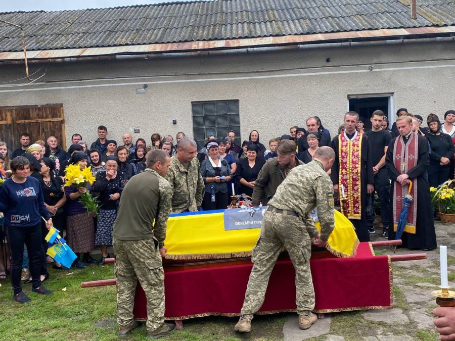Провести мужнього сина України та востаннє попрощатися з ним прийшли священнослужителі, військовослужбовці, керівництво громади, його побратими, друзі, однокласники, найближчі та найрідніші люди, інформують "Вікна" з посиланням на інформацію Городенківської міської ради територіальної громади.