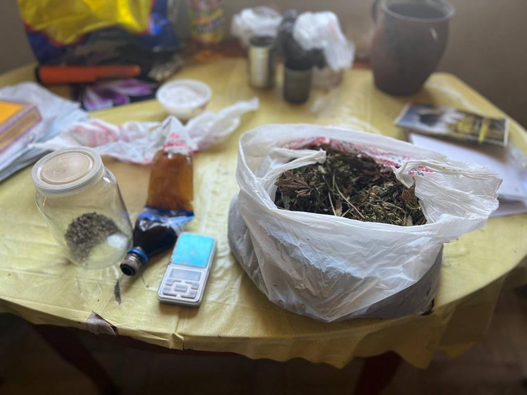 Під час обшуків, крім зброї, ножів, патронів, пороху, правоохоронці знайшли 6 паперових згортків та 2 полімерні пакети із канабісом.