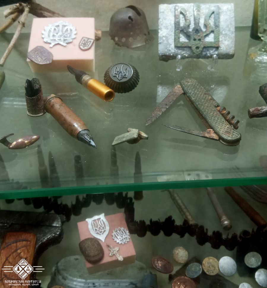 Серед цінних експонатів – кокарди, пряжки з тризубом. Це все вироби ручної роботи, які носили очільники повстанців.
