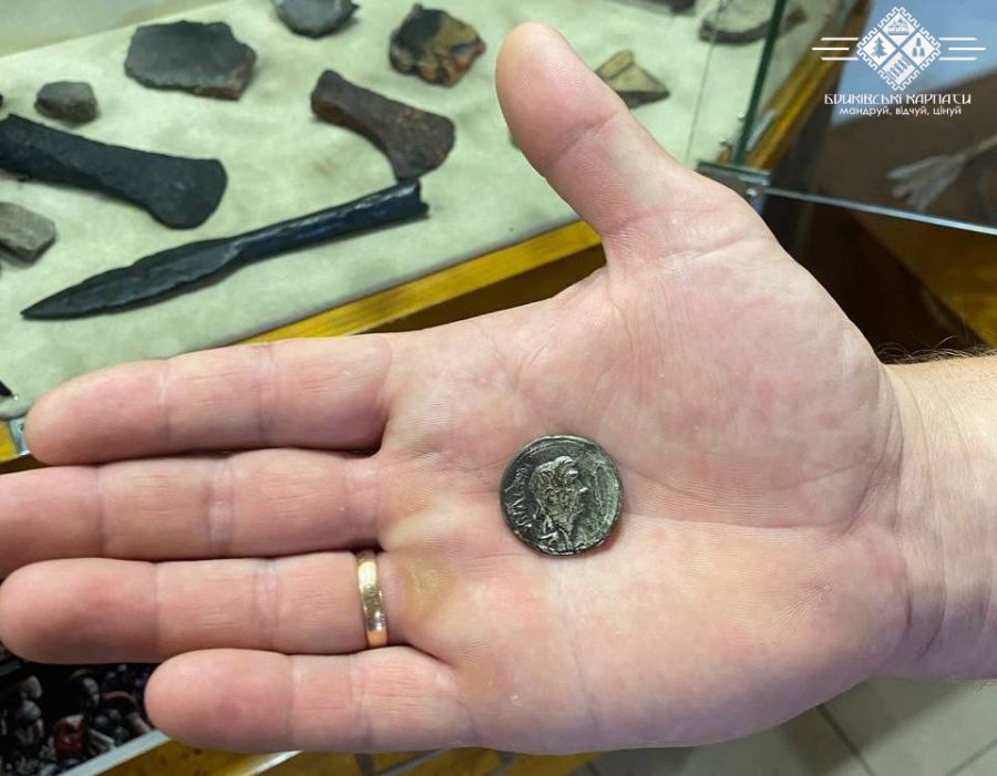 Цікавою знахідкою є і монета (один динарій), яка датується роком народження Ісуса Христа. Грошовий знак виявили на території Івано-Франківської області.