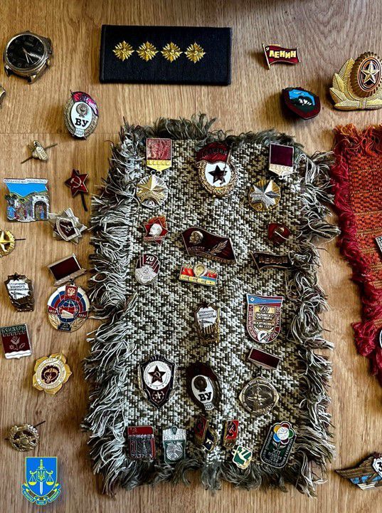 Також у начальника ТЦК знайдено символіку рф та СРСР — георгіївські стрічки, прапор і військовий головний убір країни-агресорки, футболку із логотипом "СССР", радянське посвідчення, партійний квиток члена забороненої партії, коробку із монетами рф.