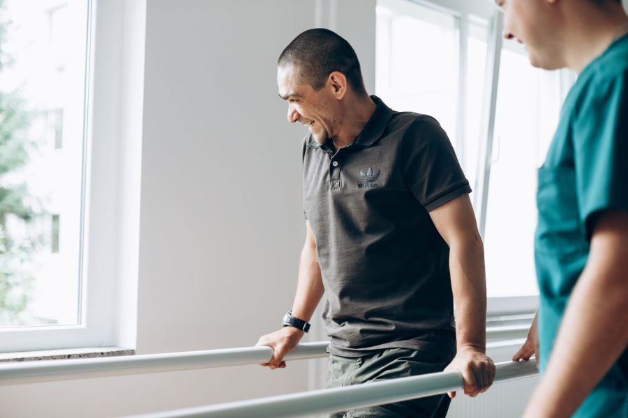 Сьогодні позаду вже півтора десятка оперативних втручань, Андрій з Тетяною другий місяць у Центрі фізичної та реабілітаційної медицини обласної клінічної лікарні разом роблять перші кроки.