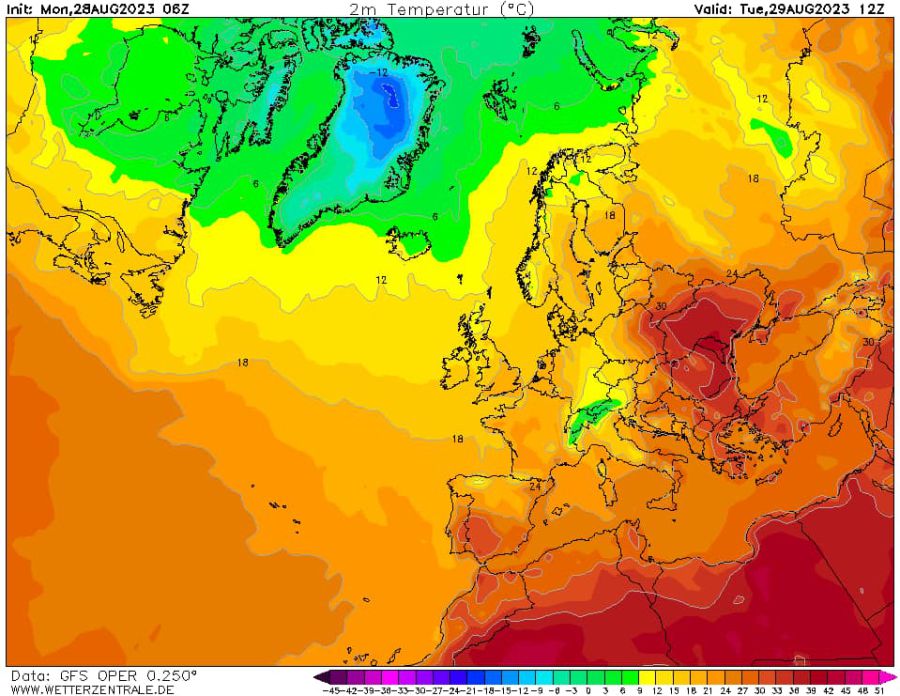 Більшу частину доби 29 серпня в Україні буде сухо й ясно. Проте в другій половині дня і ввечері дощі з грозами пройдуть в західних областях та на Житомирщині й Вінниччині. Єдина засторога — через сильну спеку і вертикальні темпоконтрасти ймовірні грози при дощах, локально сильні зливи і шквали.