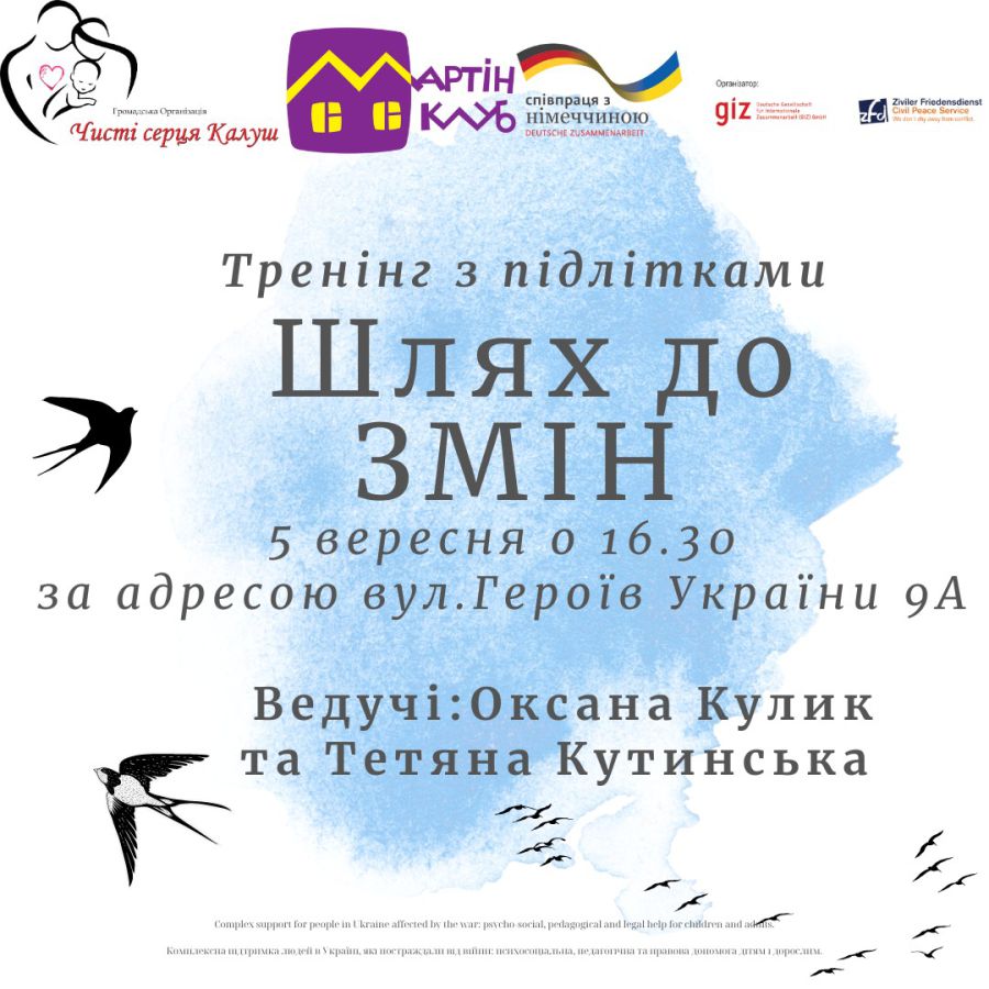 Тренінг для підлітків "Шлях до змін" відбудеться 5 вересня о 16:30, інформують "Вікна".