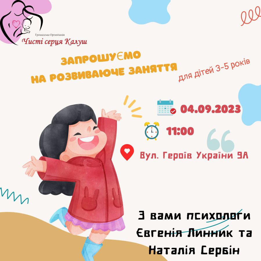 Розвиваюче заняття для дітей анонсоване на 4 вересня 2023 року об 11:00.
