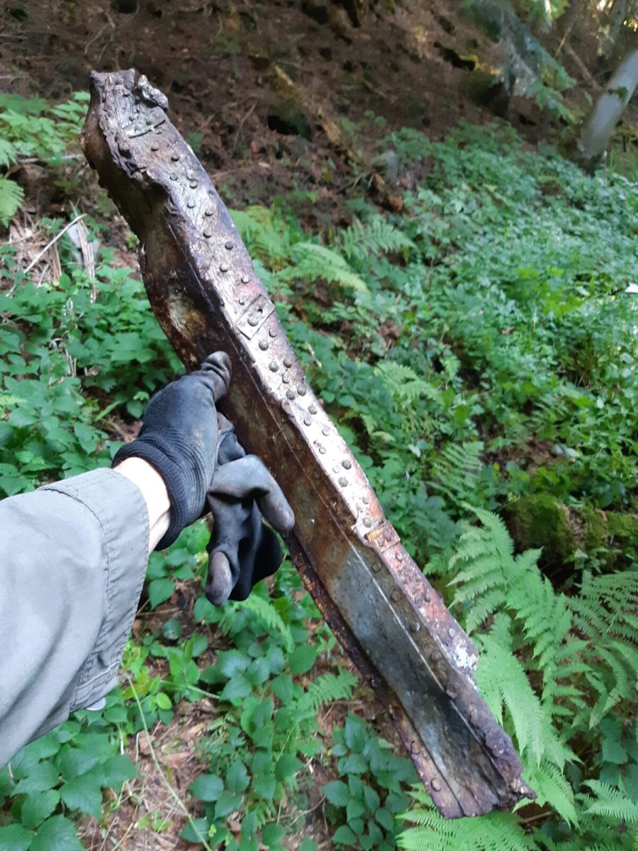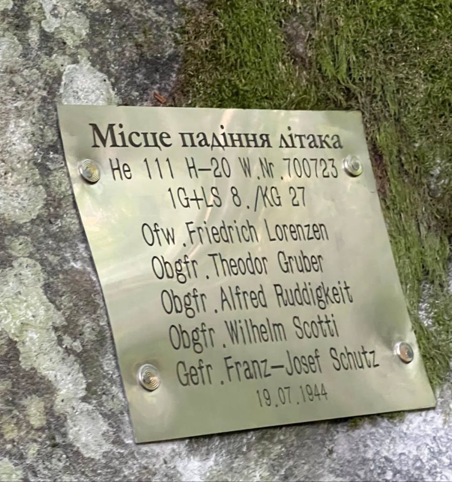 — Ці жетони також кажуть за цей літак. Визначили екіпаж, що складався з 5 осіб, — додає Андрій. — Визначили траєкторію падіння літака: все ж таки він десь врізався зверху гори і, палаючи, падав по схилу донизу. Архівний пошук дав свої результати. За знайденими жетоном та уламками літака пошуковці встановили, що це — літак із бортовим номером 700723, що здійснював політ за маршрутом Мелець (Польща) — Ожидів (Україна). Приналежність — ескадра KG27. Вантаж невідомий.