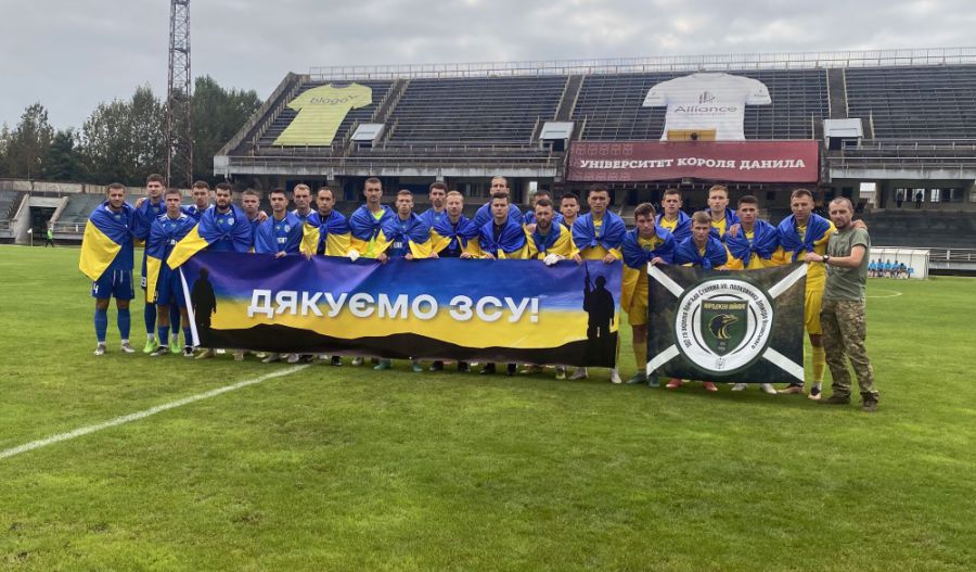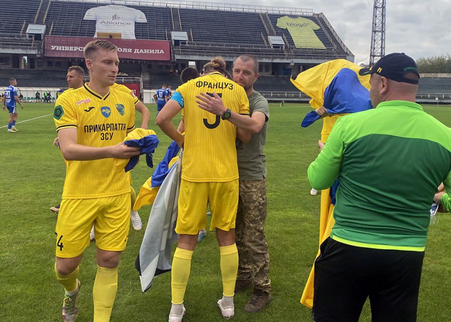 "Від бригади рідного краю для Команди рідного краю", — сказав військовий, який також зробив і перший символічний удар по м’ячу у поєдинку проти "Епіцентру".