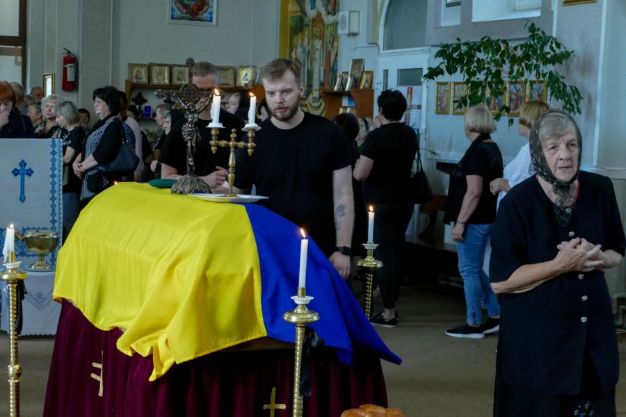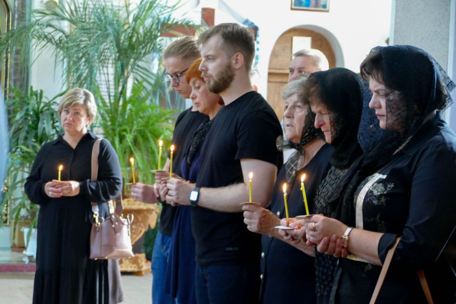 Згорьована мати, рідні, друзі, знайомі і близькі разом молилися за упокій душі померлого Героя.