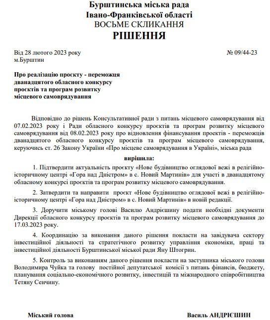 Зазначимо, що цей проєкт є переможцем Обласного конкурсу проєктів та програм розвитку місцевого самоврядування. 28 лютого 2023 року міський голова Бурштина Василь Андрієшин підтвердив актуальність реалізації проєкту.