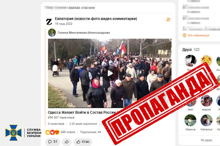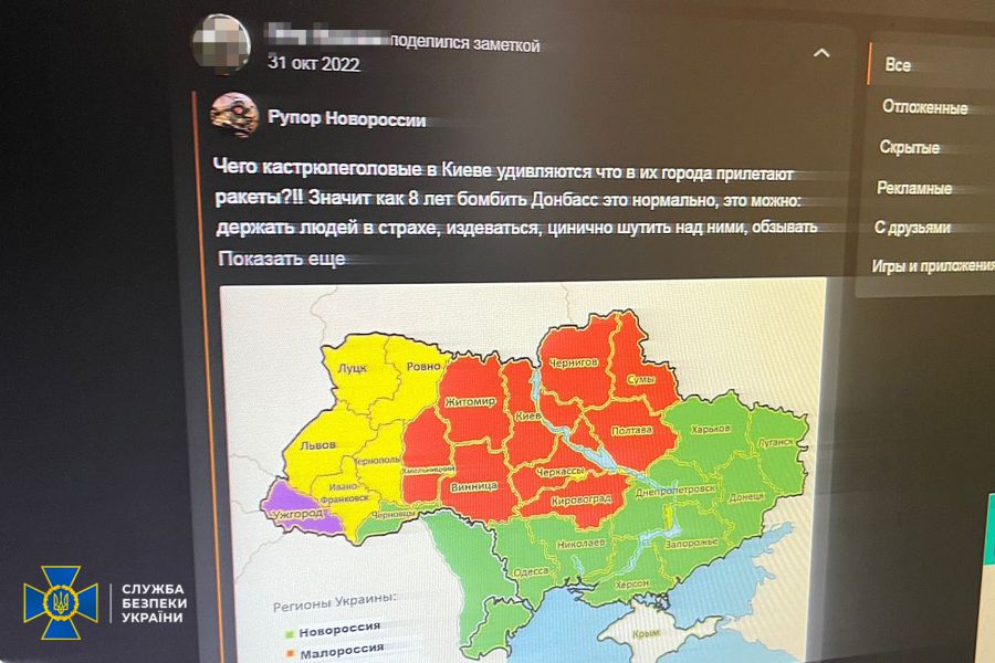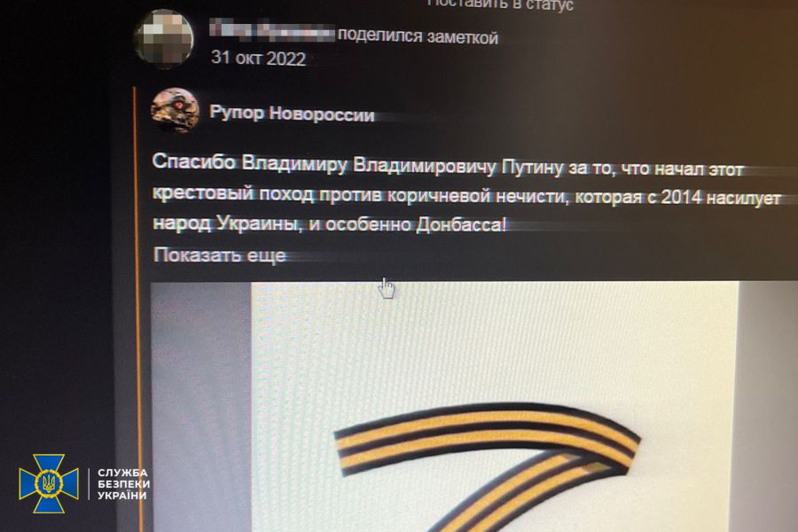 Залучена СБУ експертиза підтвердила, що поширені фігурантом матеріали містять заклики до захоплення державної влади та до зміни меж території України, виправдовують агресію рф проти України та прославляють її учасників.