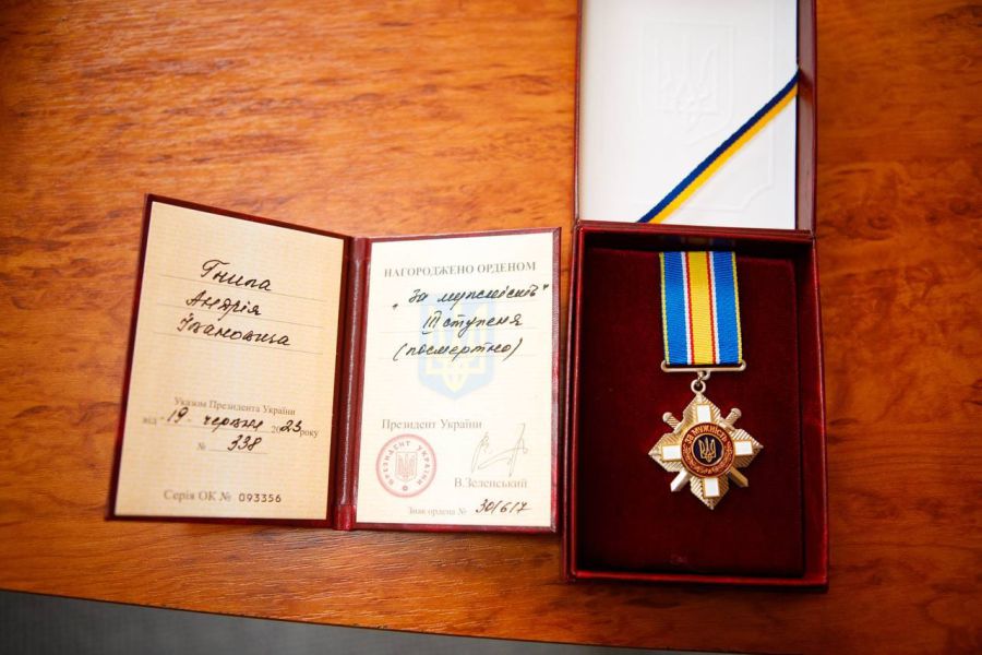 За виконання завдань на території Донецької області Андрію Гнипу посмертно присвоїли орден "За мужність" ІІІ ступеня. Під час зустрічі із рідними Героя голова обласної державної адміністрації — начальниця обласної військової адміністрації Світлана Онищук передала нагороду батькам та дружині бійця, інформують "Вікна" з посиланням на Івано-Франківську ОВА.