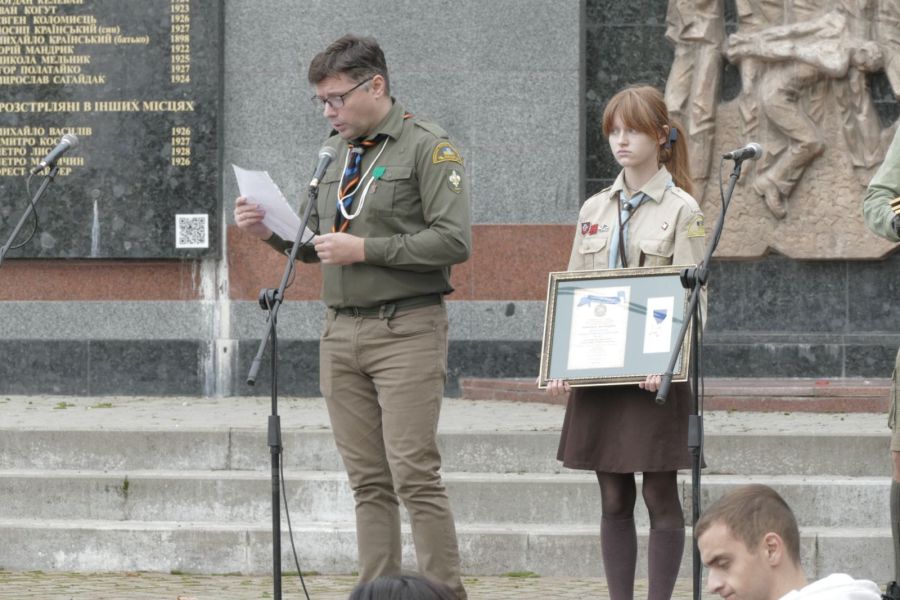 Громадський активіст з Івано-Франківська Тарас Зень вручив «Залізний пластовий хрест», найвищу пластову відзнаку калушанам, чиї родичі-пластуни загинули за Україну.