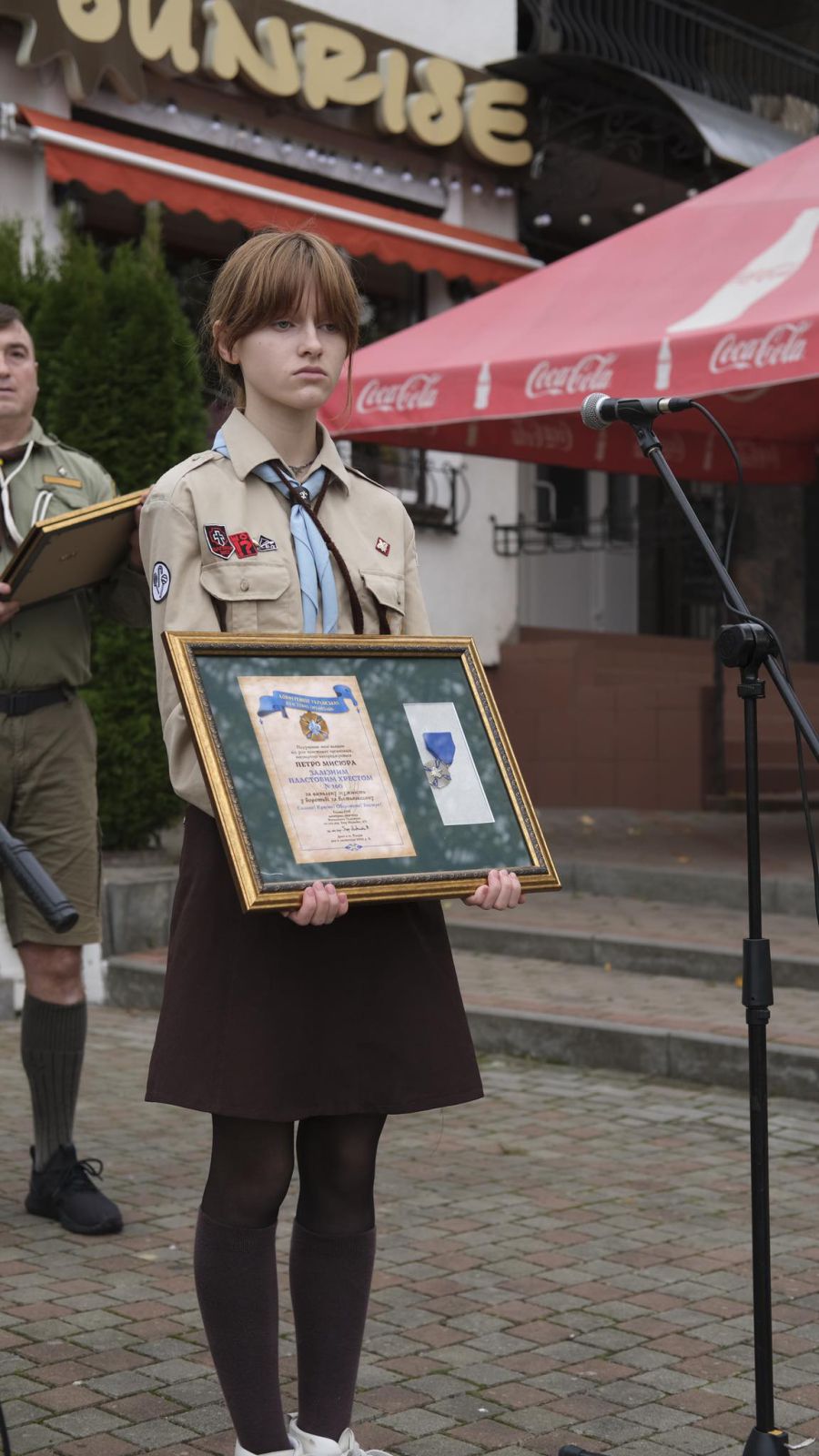 Пластун, дослідник пластового руху Станиславівщини, журналіст Тарас Зень вручив "Залізний пластовий хрест", найвищу пластову відзнаку калушанам, чиї родичі-пластуни загинули за Україну.