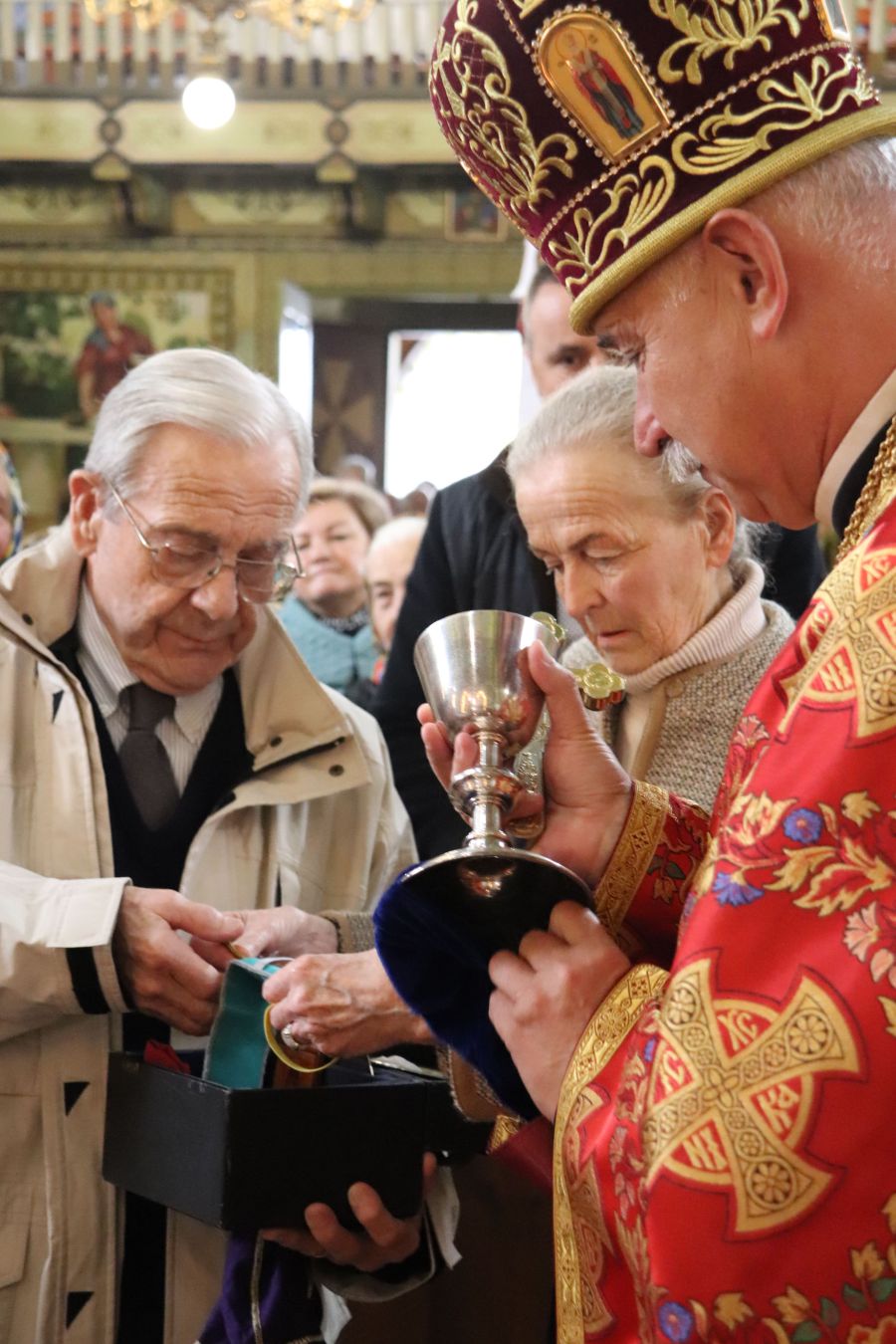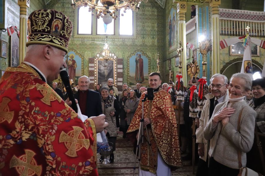У храмі відслужили поминальну панахиду за покійним отцем Юстином та померлими з родини Гірняків. Також було освячено передані реліквії, серед яких: