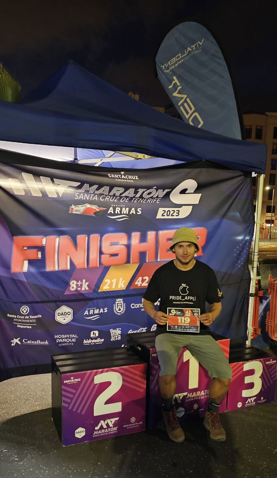 "Дистанція в 42 км є досить важкою. Температурний показник в цей час трішки не такий як влітку, але дуже спекотно. Старт і фініш відбувається з центра. Щоб подолати 42 км, потрібно здолати два однакових кола по 21 км, — акцентував ультрамарафонець. — Ще за довго до приїзду я думав, що буде простіше бігти, бо я буду добре готуватися. Але на жаль, було складно через дуже сонячну погоду і важкі підйоми. Щодо підйомів, я здогадувався, що буде важко. Проте я мав головну мету — продовжити збирати гроші на протези для захисників України".