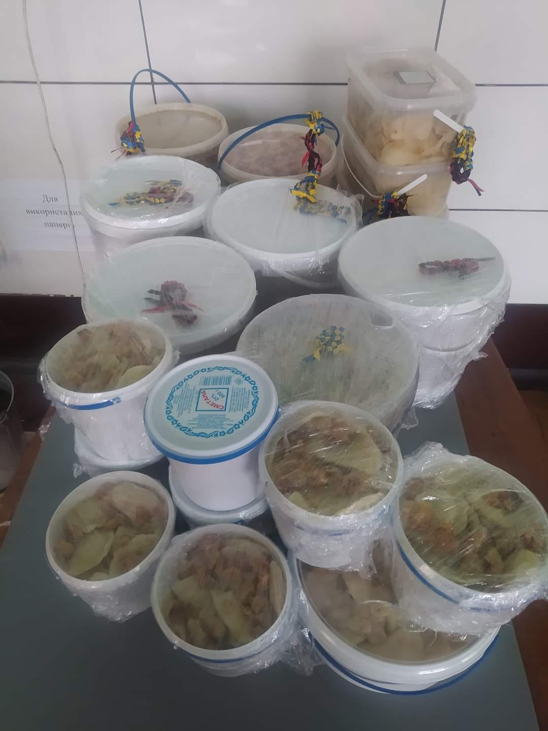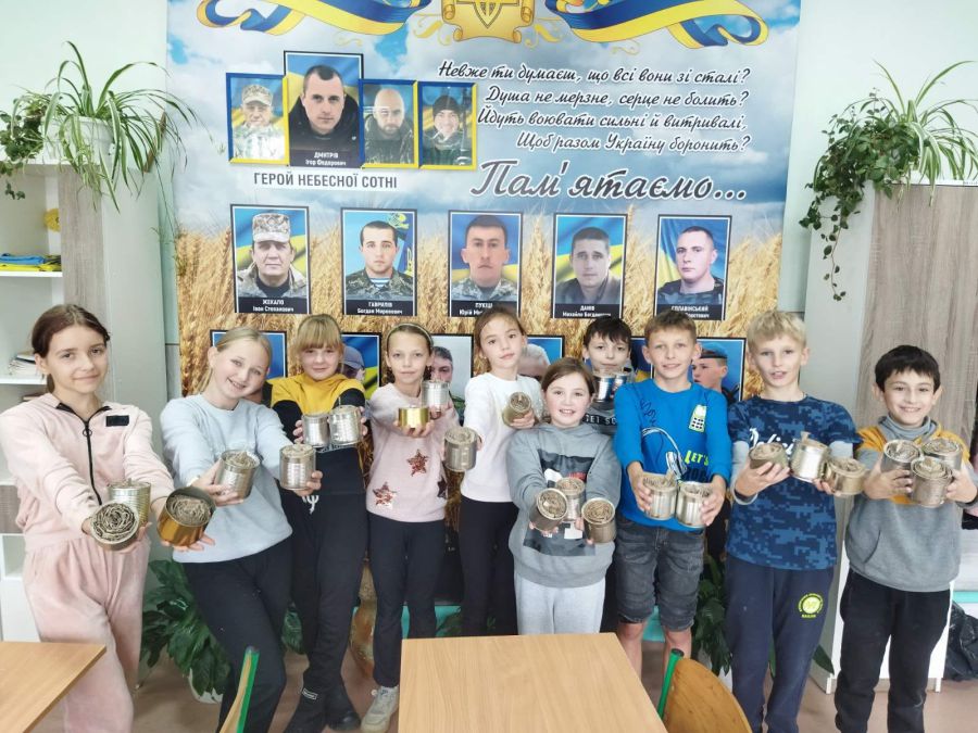 Паралельно учні 5–9 класів під керівництвом учительки трудового навчання Наталії Мирон виготовляють окопні свічки. Баночки збирали усією гімназією, кошти на придбання парафіну приносили всі охочі. Закуплено уже біля 70 кг парафіну. Восьмикласниця Марія Оклія під час осінніх канікул самостійно виготовила 100 окопних свічок та принесла до закладу.