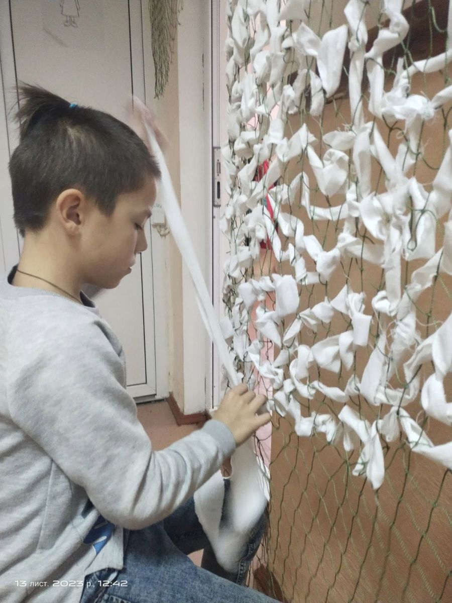 Уже другу поспіль маскувальну сітку білого кольору почали плести у Студінській гімназії. Учні і вчителі в позаурочний час старанно виконують роботу, квапляться, намагаючись вкластися в терміни і виконати замовлення наших Захисників. Адже попереду — зима. Матеріал для сіток приносять мешканці Студінки і Середнього Бабина, передали також із Кропивника, інформують "Вікна" з посиланням на Калуську міську раду.