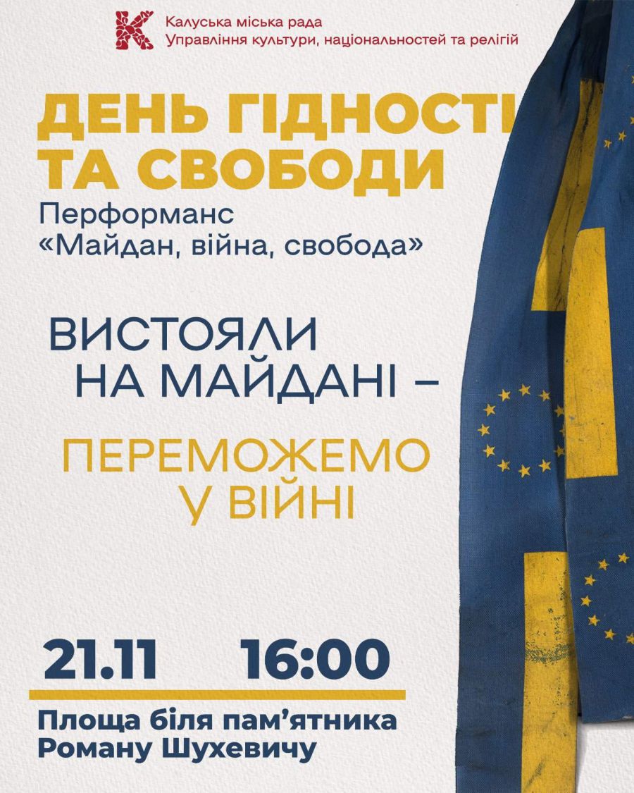 Перформанс відбудеться на площі біля пам’ятника Роману Шухевичу на місці, звідки калушани вирушали на Майдан, інформують "Вікна" з посиланням на Калуську міську раду.