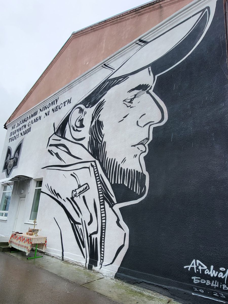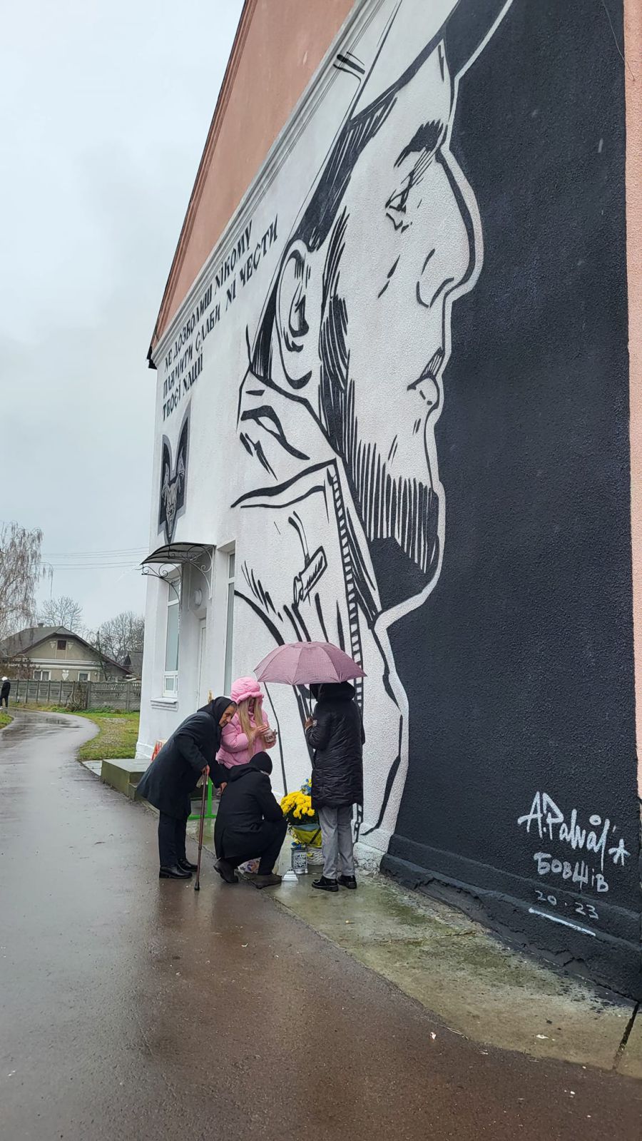 "Я просто перестав пручатися тій кількості співпадінь, знаків, випадковостей, які сталися в той проміжок часу. Якийсь неймовірний пазл склався в кінці жовтня, було чітке усвідомлення того, що я мав опинитися там, в селі на Івано-Франківщині, і зробити мурал на твою честь. Я можу тільки підтвердити одне, друже командире. Тебе люблять, твою памʼять плекають, школа в Бовшеві носить твоє ім'я. За тобою сумує вся Україна", — написав автор стінопису Андрій Пальваль.