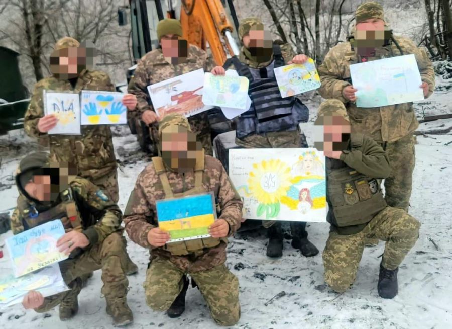 "Ще наприкінці листопада у Калуському ліцеї №4 відбувся благодійний ярмарок для допомоги ЗСУ. Кошти планувалося спрямувати на бригаду, де служить батько учня 6 класу Дениса Шкургана. Тоді весь ліцей долучився не тільки до ярмарку, а й до виготовлення листівок та малюнків для Захисників", — розповіла заступниця директора ліцею Тетяна Христонько. Батько Дениса, приїхавши в відпустку, відвідав заклад, поспілкувався з дітьми та подарував прапор, підписаний побратимами.