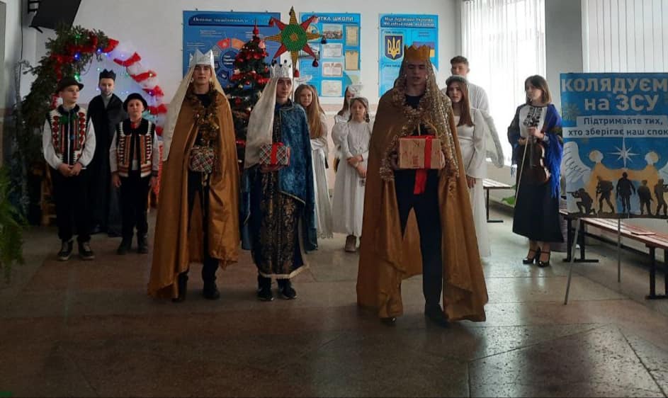 Представники самоврядування завітали до учнів 5-9 класів та педагогічного колективу з виставою на сучасний лад "Різдвяна шопка", інформують "Вікна" з посиланням на Калуський ліцей №5.