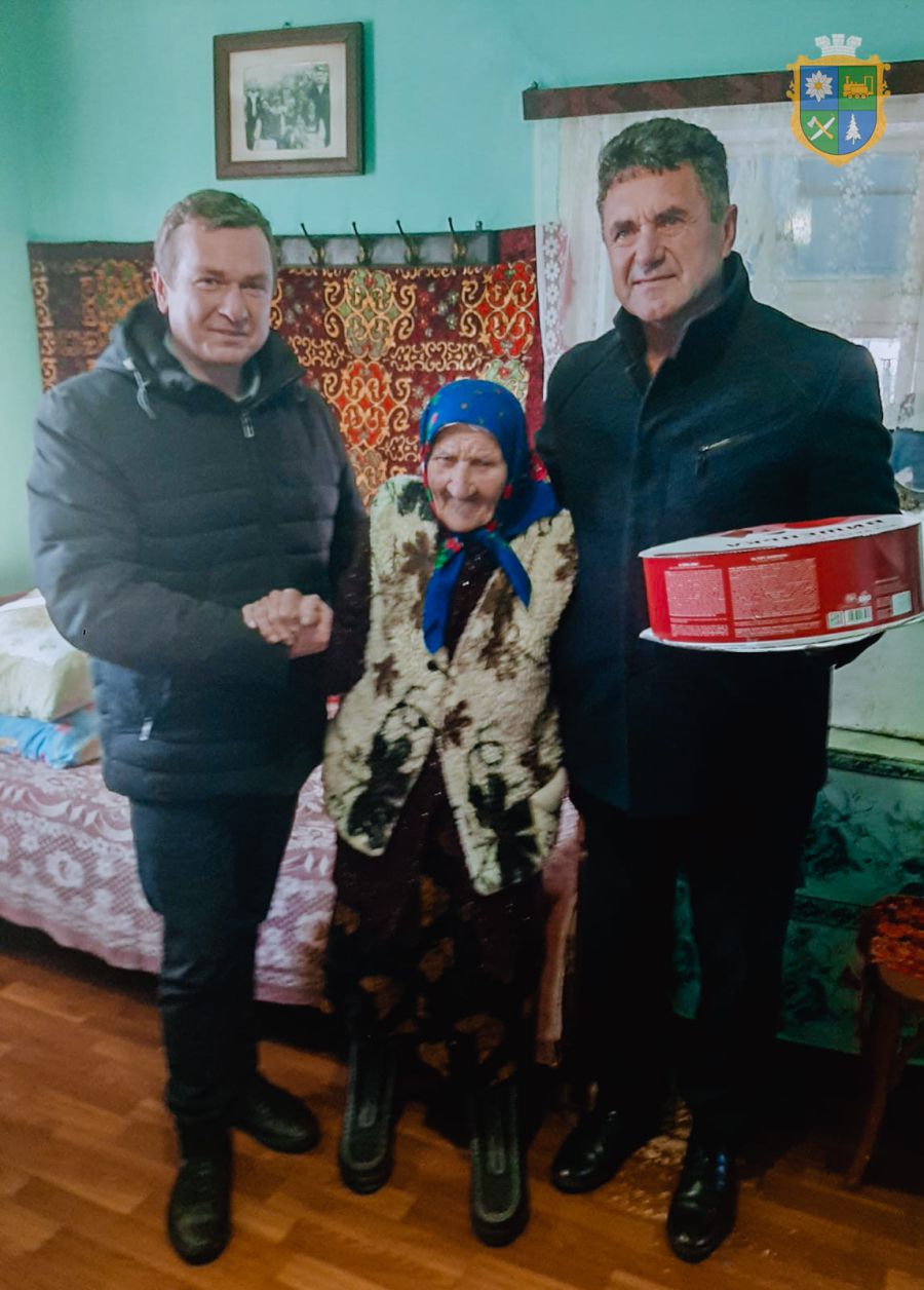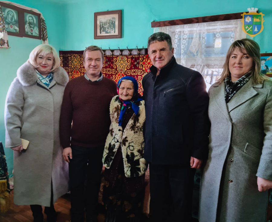 Привітати жінку приїхав селищний голова Микола Мацалак, заступниця селищного голови Оксана Данчук, начальник відділу освіти, молоді та спорту Вигодської селищної ради Віталій Олійник та начальник сектору соціального захисту Лілія Семенишин.