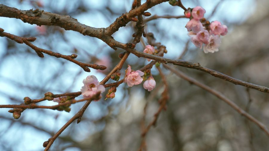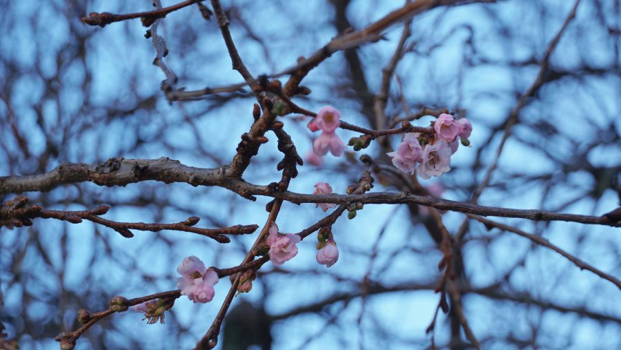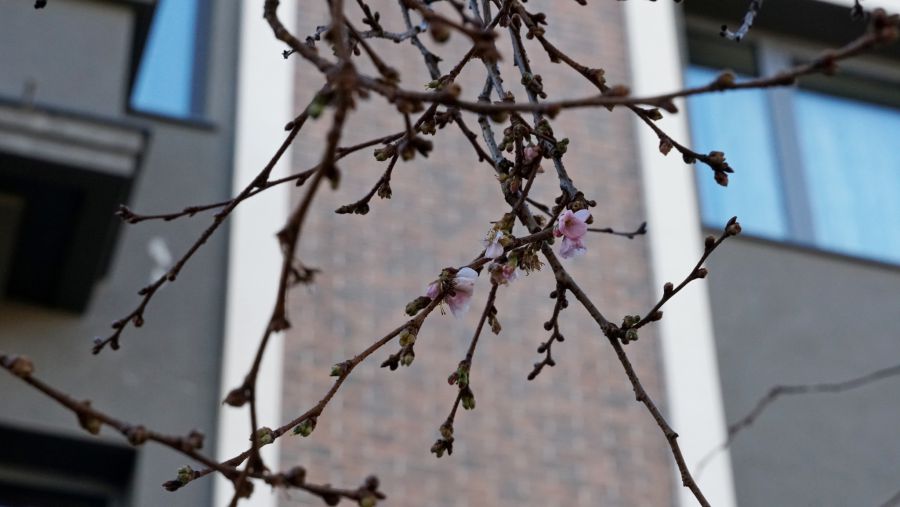 "Шалена" сакура у Мукачеві квітне і посеред зими. Попри низьку температуру повітря на дереві можна помітити декілька квітучих бутонів, повідомляє Мукачівська міська рада.