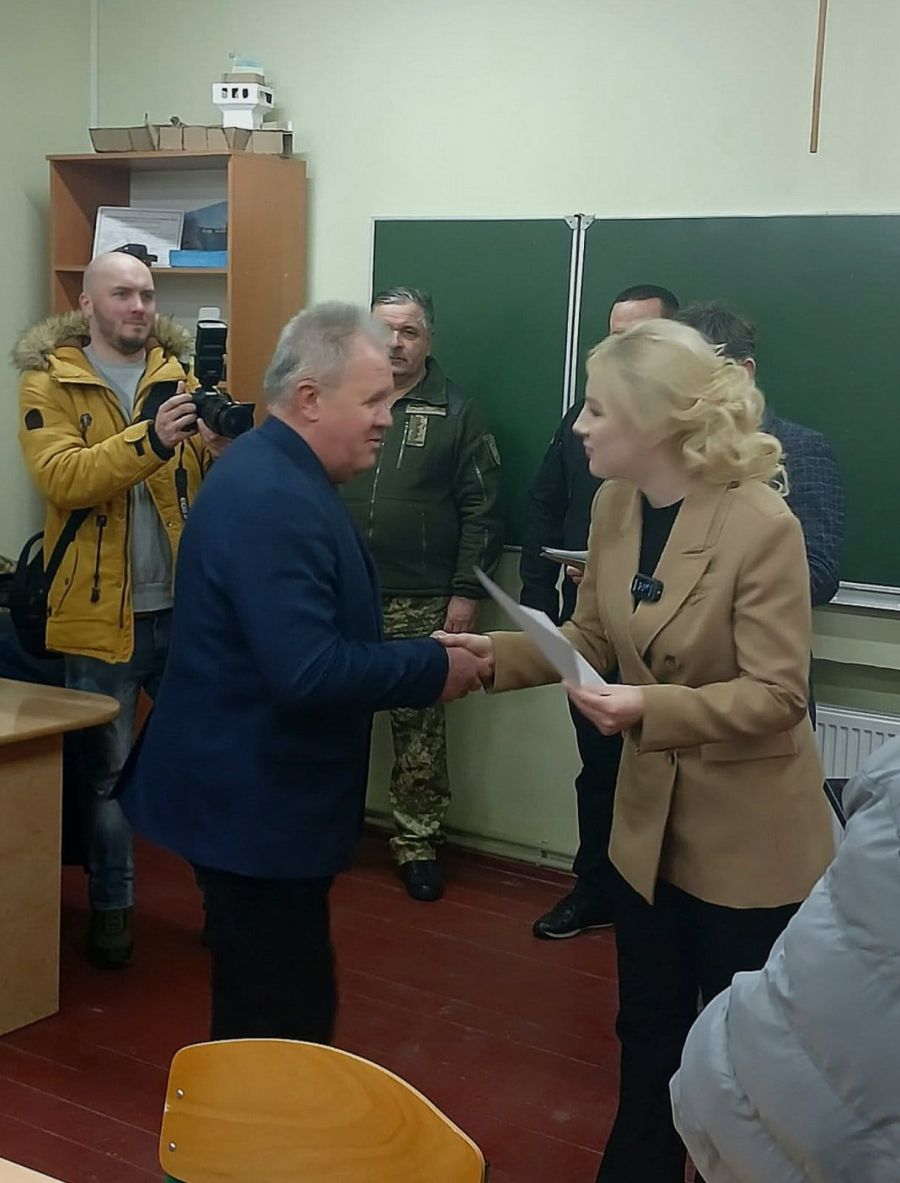 17 січня голова Івано-Франківської ОВА Світлана Онищук вручила директору Калуського ліцею №3 Михайлу Коротичу сертифікат на отримання комплекту обладнання для кабінету предмету "Захист України".