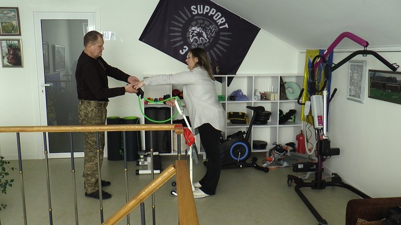 Лікарка фізичної та реабілітаційної медицини Наталія Сенчак розповідає, що для повного відновлення руки Олександра знадобиться щонайменше пів року. Зараз, додає фахівчиня, військовослужбовець може підняти й опустити пляшку кефіру, що вже є прогресом.