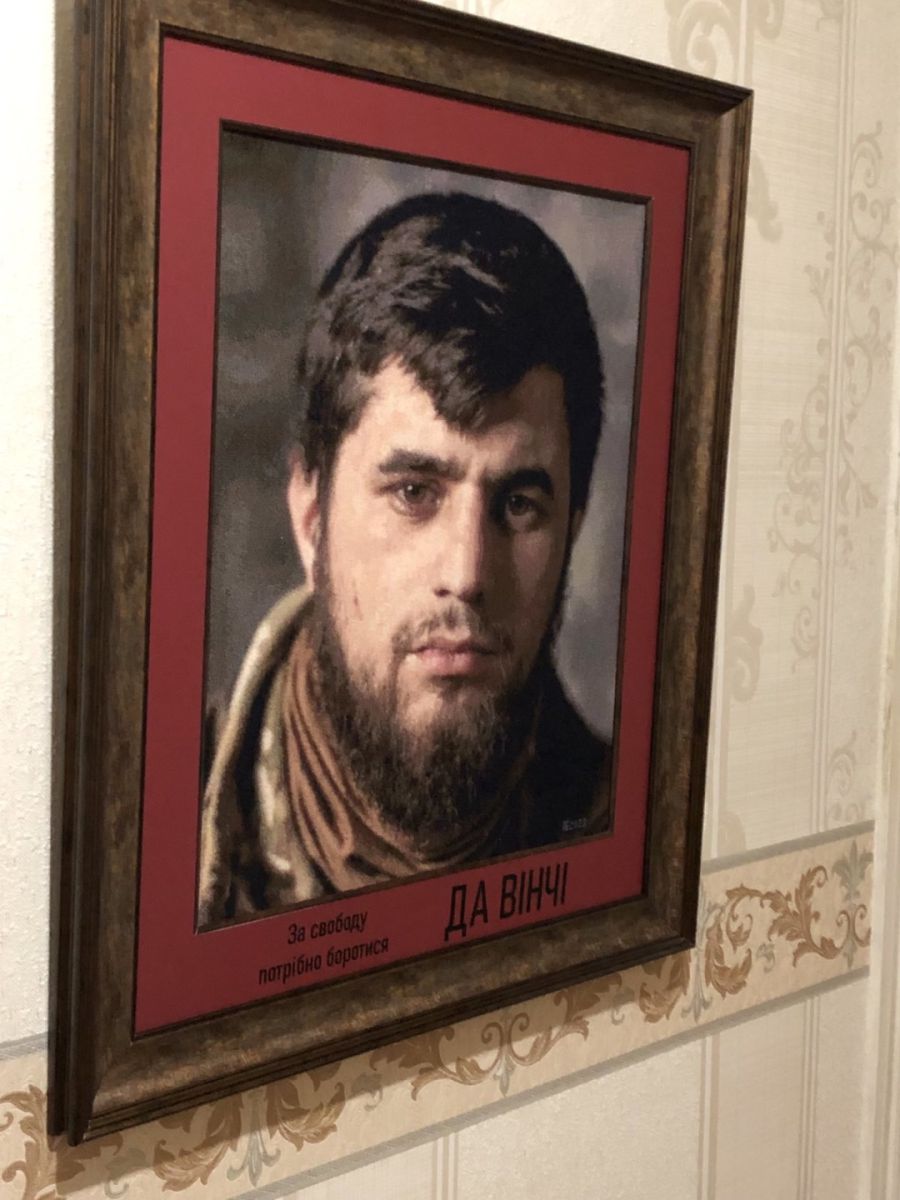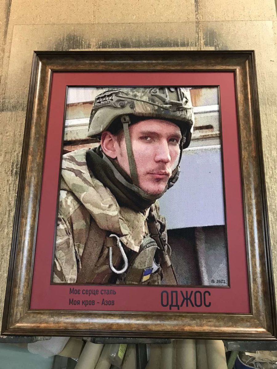 «Я вишила портрети захисника Київщини і Маріуполя Андрія Огородника (позивний «Оджос») та Героя України Дмитра Коцюбайла («Да Вінчі»). Я знаю маму Андрія, їй дуже боляче від втрати сина, тому вирішила вишити його портрет і подякувати їй за Героя. Вперше я звернула увагу на Дмитра Коцюбайла, коли він отримував орден «Золота зірка» і мені його образ дуже запам’ятався. Як дізналася про його загибель, мені було боляче, тому вирішила вишити його портрет», — зазначила майстриня.