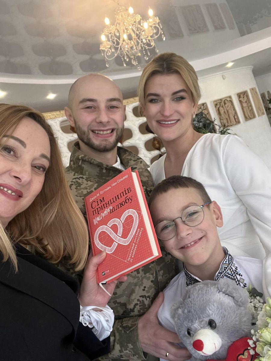 "З задоволенням передали вітання та подарунки нашим сьогоднішнім молодятам від тих, хто сьогодні святкує своє першу річницю — ситцеве весілля! Звичайно, хотілося б, щоб сьогодні хлопці вже не були у військовій формі, як минулого року, однак, це не так. Але точно знаю, що саме з такими, молодими, закоханими, які вірять в майбутнє та виборюють своє щастя та незалежність, у нас все буде добре. З гордістю за наших молодят та вдячністю бути причетними до історії чудових сімей пройшов цей день, день всіх закоханих".