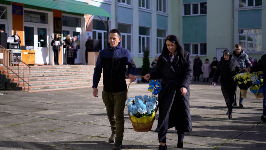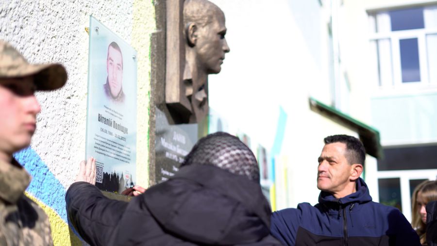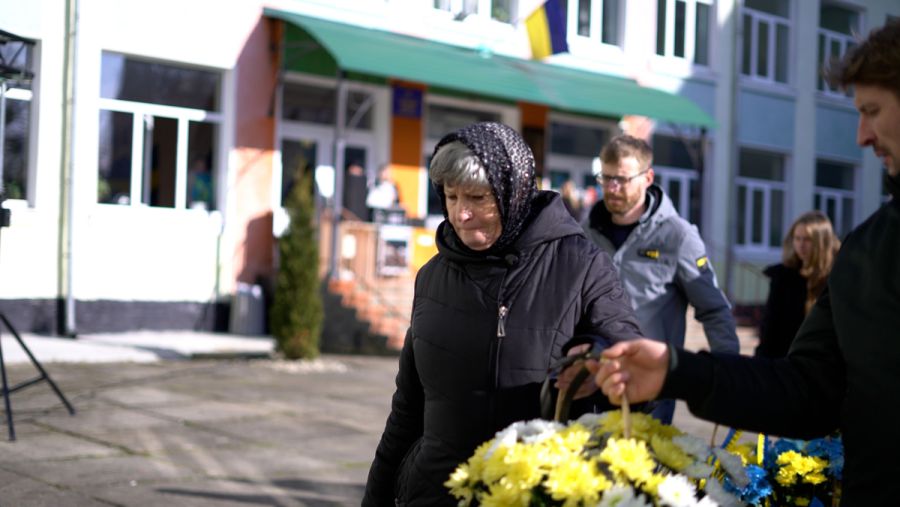 На відкритті меморіальної дошки Герою директорка Калуського ліцею №6 Віра Притуляк назвала Віталія Поліщука взірцем гідності, поваги, мужності та любові до Батьківщини.