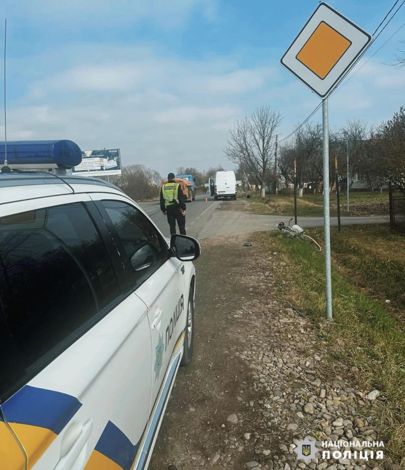 Аварія сталася 5 березня близько 13:30 в селі Пядики, що у Коломийському районі. Відомо, що 34-річна водійка автомобіля "Мерседес спрінтер", мешканка району, не обрала безпечної дистанції та здійснила наїзд на велосипедиста, повідомляє поліція Івано-Франківської області.
