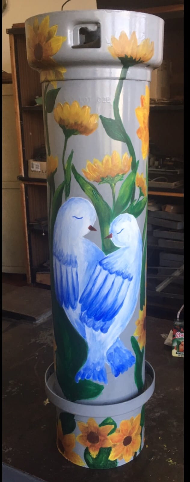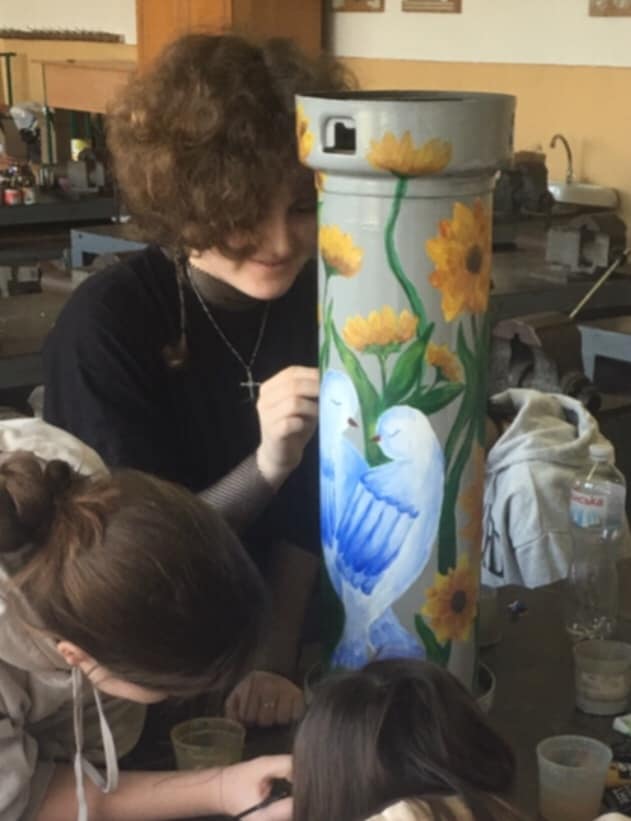 Квіти соняшника вважають уособленням стійкості й мужності українських воїнів та символом любові до Батьківщини. Голуб — птах миру й любові. Юні художники, втілюючи свій проєкт, хотіли підтримати захисників України в прагненні захистити українські родини, щодня наближаючи перемогу та мир на рідній землі, повідомляє Калуський ліцей №3.