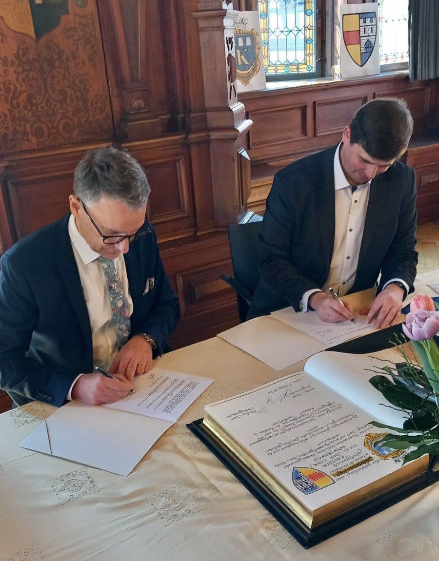 Міський голова Андрій Найда та мер міста Лар Маркус Іберт підписали меморандум про солідарне партнерство. Громада Лара вже підготувала для калушан пожежний автомобіль.