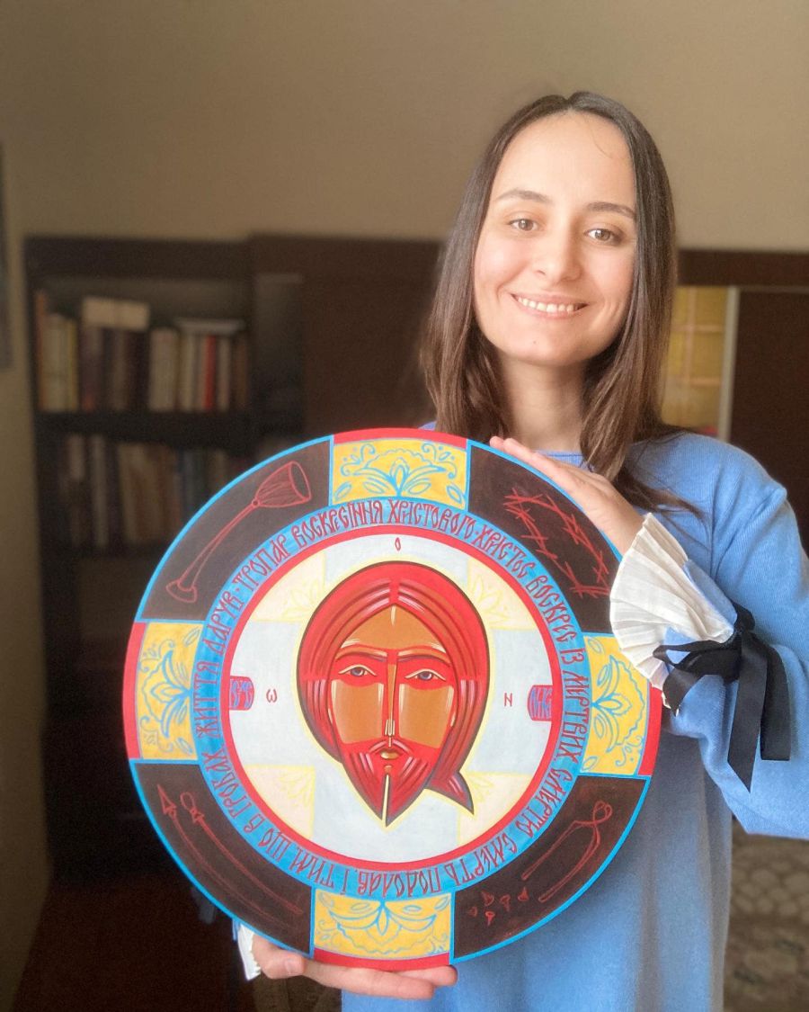«Всього два слова, але як багато вони важать для християнина, а як багато вони важать для українця…Хрест Спасителя розквітає жовто-блакитними взорами, що ж це може означати?» — розповіла мисткиня.