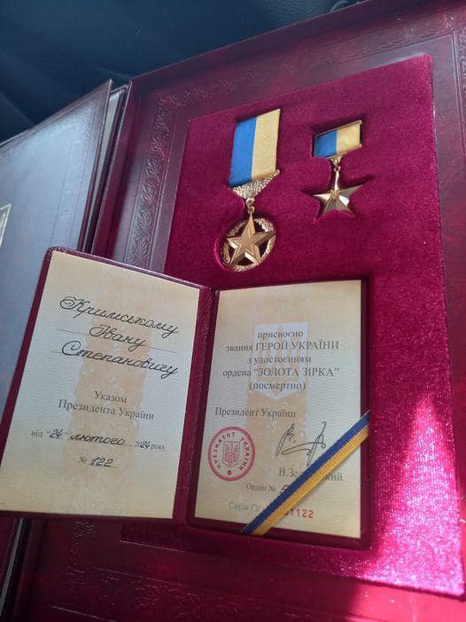 Серед присутніх були і рідні Івана Кримського, полеглого капітана ЗСУ з Косівщини. Захисникові посмертно присвоїли звання Героя України. Про це у соцмережі повідомила голова Івано-Франківської обласної військової адміністрації Світлана Онищук, інформують "Вікна".