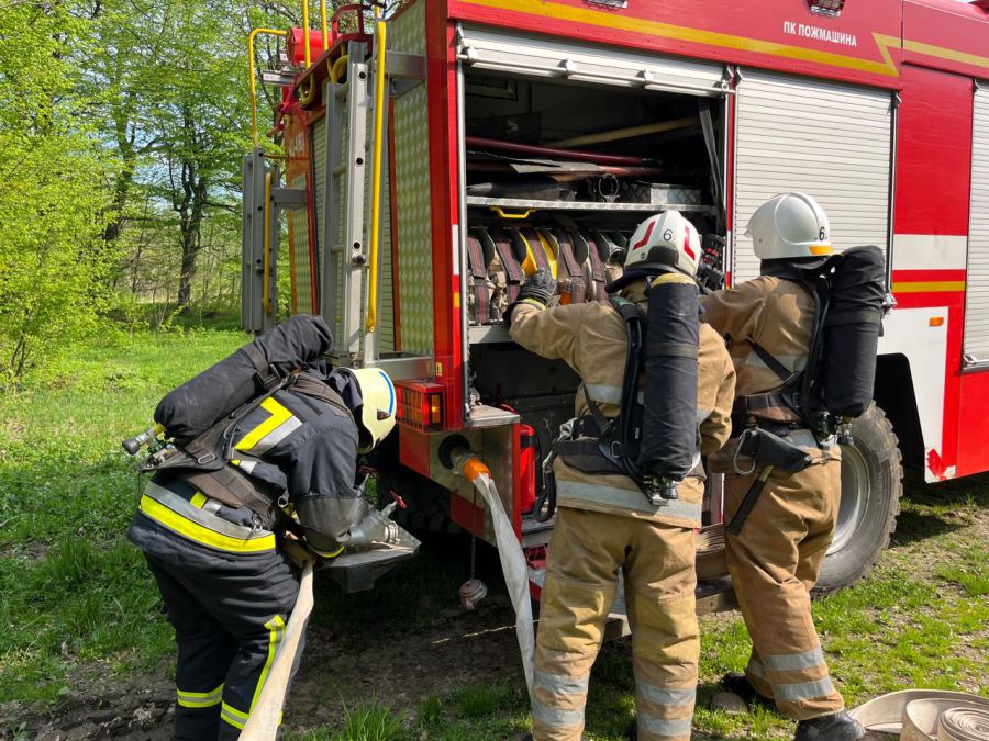 Ліквідація умовної пожежі здійснювалась стволами Б від автоцистерн, пристосованою технікою та ранцевими оприскувачами, інформують "Вікна" з посиланням на Калуське районне управліннч ГУ ДСНС в Івано-Франківській області.