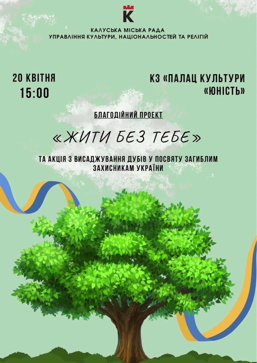 У суботу, 20 квітня, для сімей загиблих Захисників відбудеться захід, в рамках благодійного проєкту "Жити без тебе", інформують "Вікна" з посиланням на Калуську міську раду.