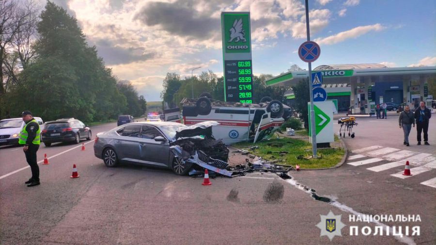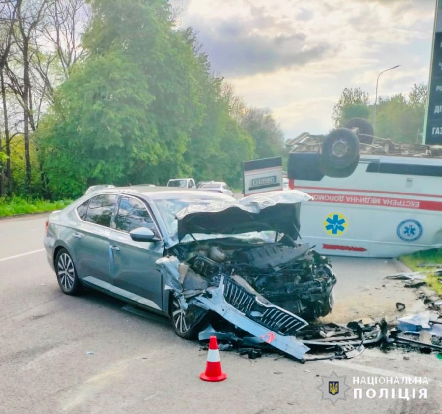 Внаслідок автопригоди отримали тілесні ушкодження та госпіталізовані до лікарні: керманич автомобіля «Skoda SUPERB», лікар та фельдшер швидкої медичної допомоги, 1958 та 2004 р.н..