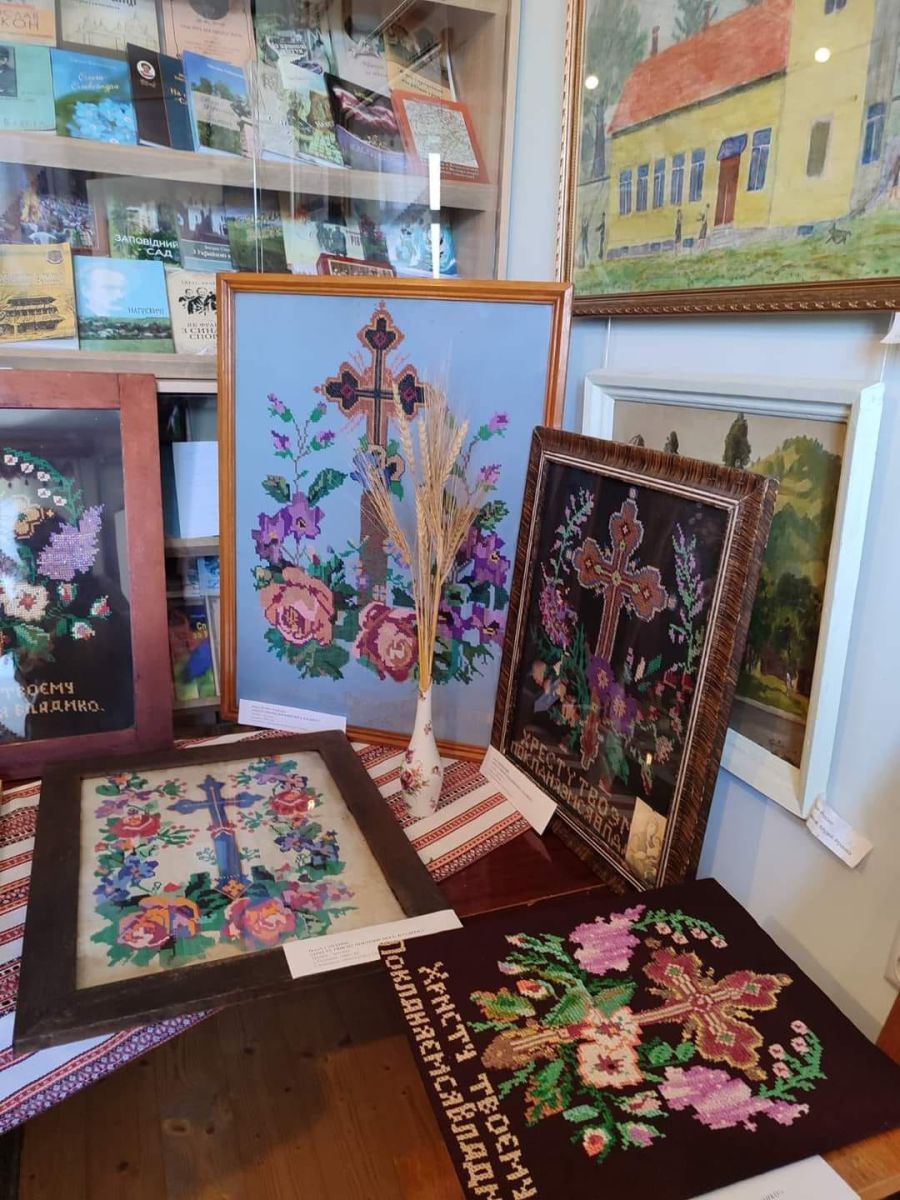 Виставлені вишивки із фондів Краєзнавчого музею Калущини, Музею-оселі родини Івана Франка в Підгірках і приватних зібрань. Географія представлених вишитих картин — Підгірки, Калуш, Мостище, Верхня, Петранка. Є тут і робота "Хресту Твоєму поклоняємось, Владико" вишивальниці з Рогатинщини.