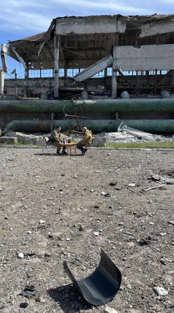 Денис Прокопенко оприлюднив світлину, зроблену під час перемовин на нейтральній території між підприємством «Комунальник» та металургійним заводом "Азовсталь" у травні 2022 рік.